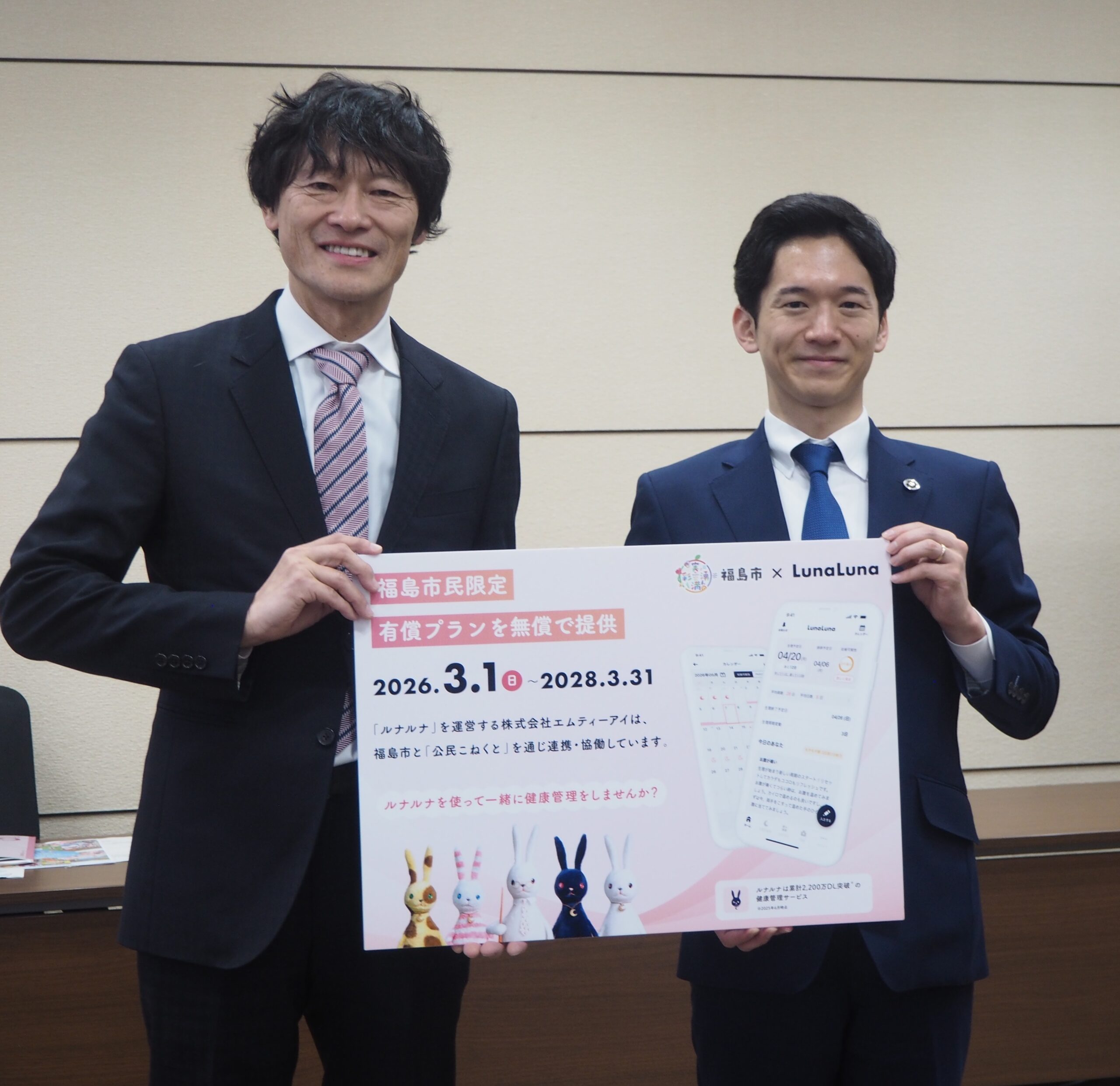『ルナルナ』プレミアムコースの無償提供については、幅広い年齢層の女性のみならず、健康に関心のある市民にとっても有益な施策であり、福島市が掲げる「えがおあふれるふくしま市」の実現につながると言及があったうえで、ぜひ多くの市民に活用いただき、自身の健康管理や将来設計に役立ててほしいと呼びかけられました。